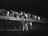 De radionieuwsdienst ANP maakte in de uitzending van 18.30 uur melding van het stoppen van Veronica en later van Radio Noordzee. De uitzending werd gedaan door twee nieuwslezers, Arend Langenberg begon, gevolgd door Bob Meijer. Tony Allan aan boord van de Mi Amgo besteedde als volgt aandacht aan het stoppen van Veronica. De terugweg van ons naar Scheveningen was een “zware”. Het moest in ploegen gebeuren omdat niet iedereen tegelijk op de Ger Anna kon. En we waren erg stil. Hier kunnen we zien dat we vertrokken naar Scheveningen. Op de achtergrond is de zogenaamde “ballenboot” te zien. Dat was een boot met zeezenderfans die voor de laatste maal een tochtje maakten langs de Norderney. Toen we de Norderney weer verlieten, sommige met een tweede boot genaamd Loekie, werd Oom Bull nog even op de schouders genomen. |